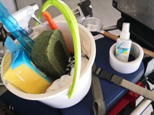 今日はツーリングで汚れたバイクをしました。 まずはこの泥汚れを落とさないと、プレクサスで磨けないのだ。 出発前にホムセンで、ホイールクリーナーとテープを購入。 ブリスも洗車セットに入ってるけど、過去に2~3回使った程度。 大昔にオートバックスの…