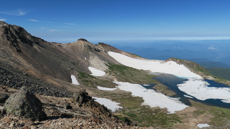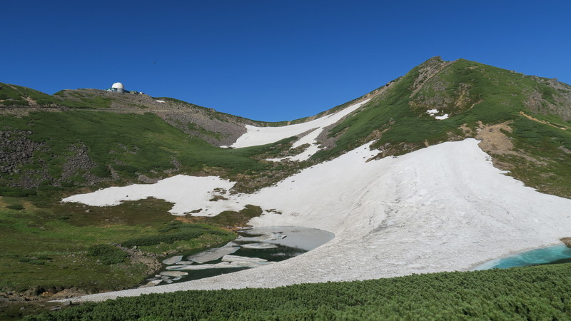 雪渓が残っているかもと思い、チェーンスパイクも持ってきたが、