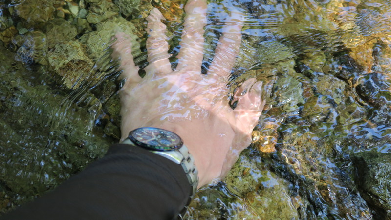 サンダルはバイクに忘れてしまったので、日焼けした手を冷やしてみる。