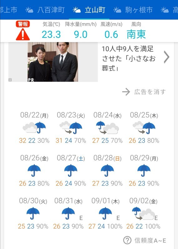 10連休の有無以前に、山口県の天気予報を見てみると、
