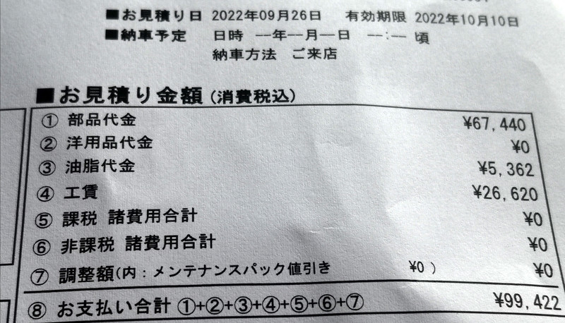 半年点検後、エンジンオイル代や、チェーン3点セットの請求もあります。