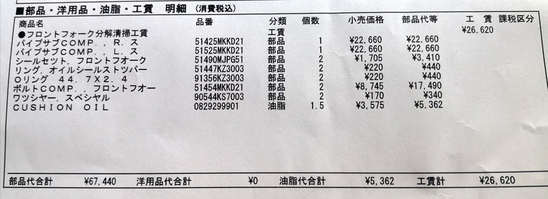 5.5万km放置していたフロントフォークの修理代は一体幾らに!?