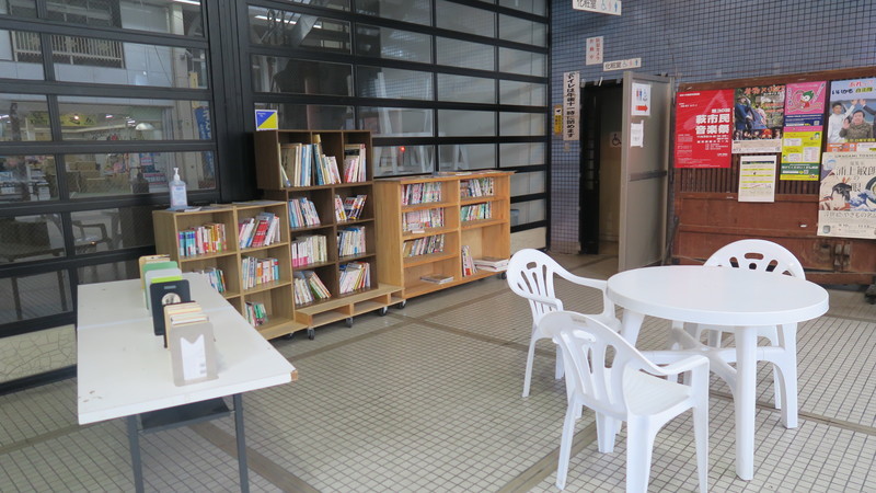 公衆トイレの前に図書コーナーも。