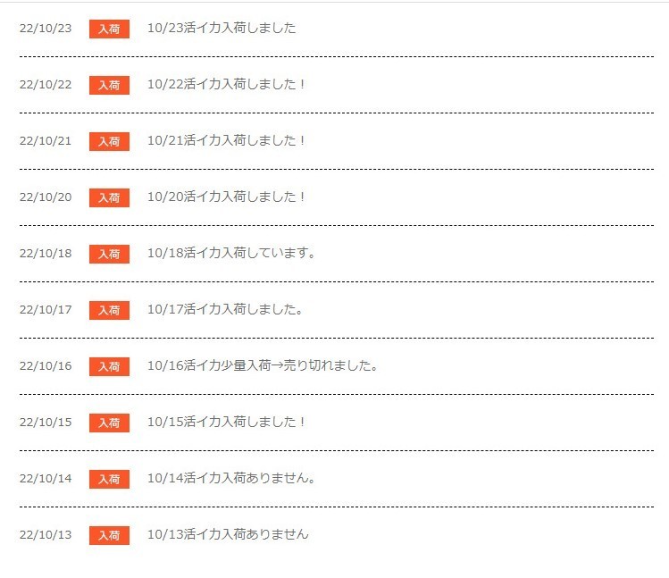 ドライブイン日本海。さて8時を過ぎているのでいか店の入荷情報を開く。