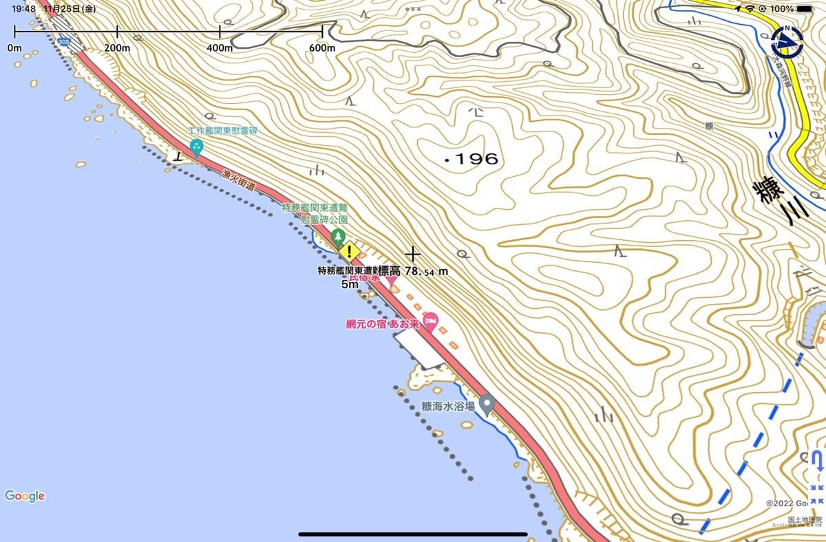 関東は大日本帝国海軍の特務工作艦で、大正12年12月にこの海で座礁し沈没。