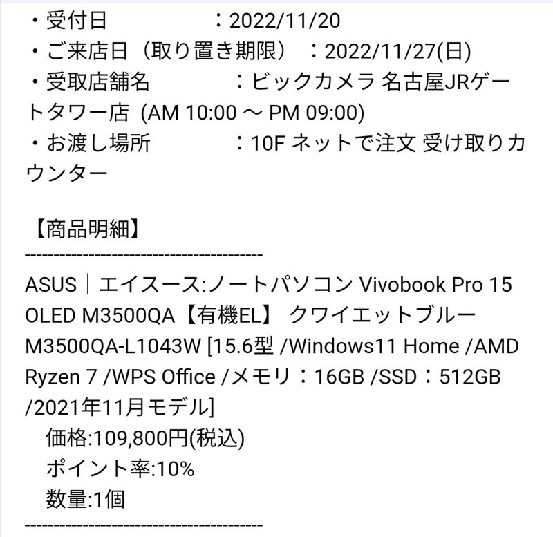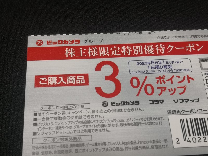 泣く泣く取り置きにしましたが、丁度ビックカメラの優待券が届く時期で、