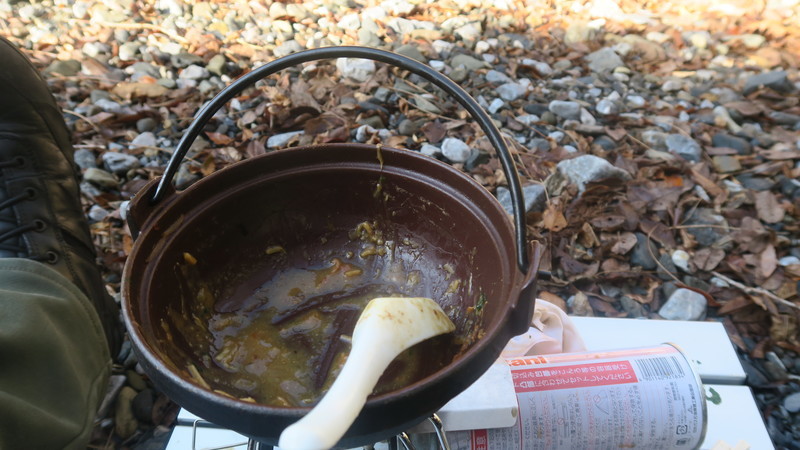 それでも寒々しい川を眺めながら食べる熱々の鍋は美味い。