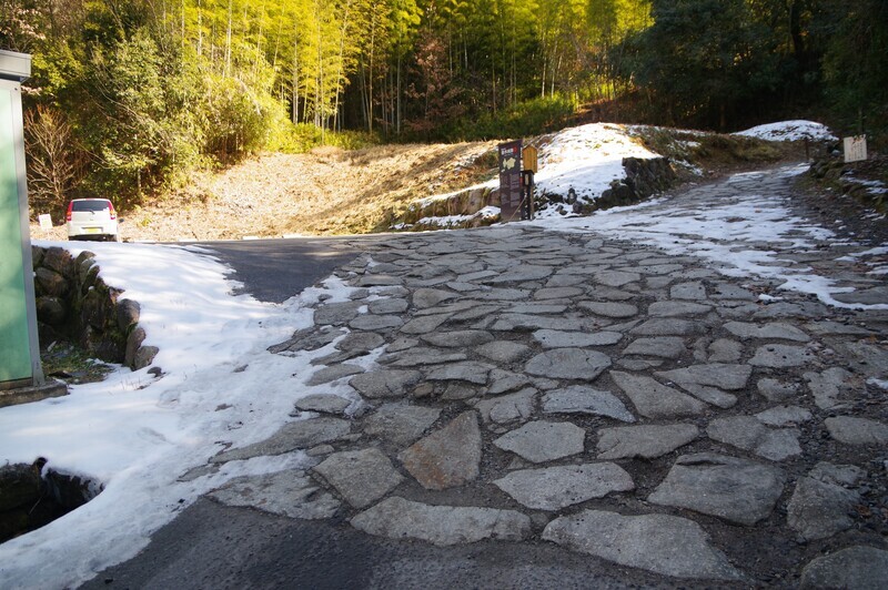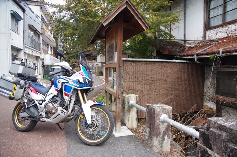 昔は村営のバス通行していたらしいが、今は四輪は通れないので大胆に止める。