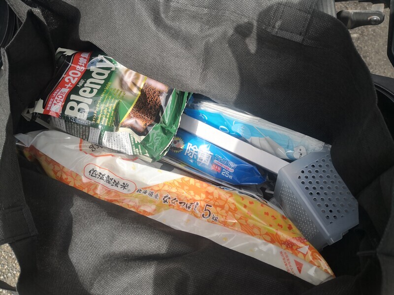 Can・Do、マツキヨで買い出し。サイドケースにすっぽり入る!