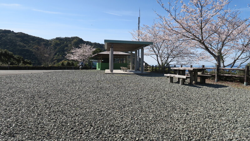 バイクはツヅラト花広場前の公衆トイレに停める。