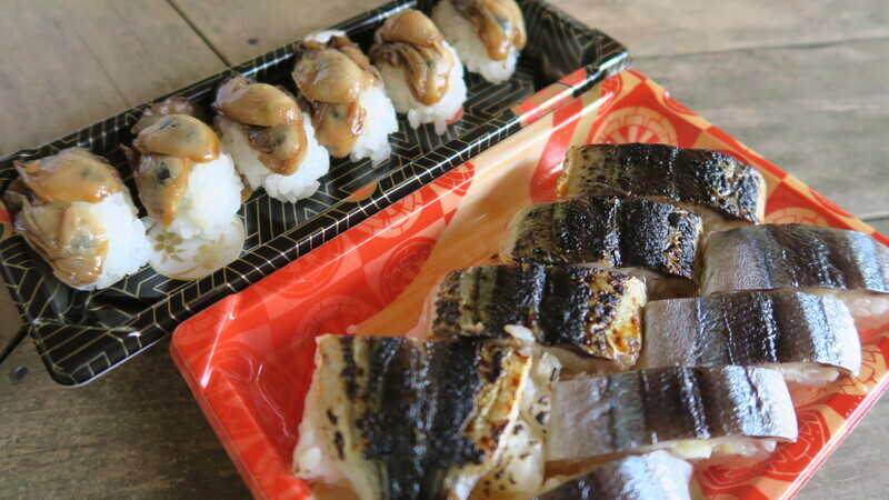 実は登る前に紀伊長島駅前に寄って、万両寿しでテイクアウトしていました。
