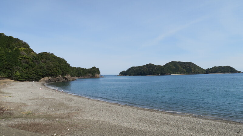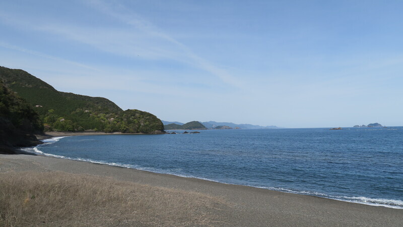 長い年月、波や石同士が研磨され角がとれた円礫の浜が広がる。