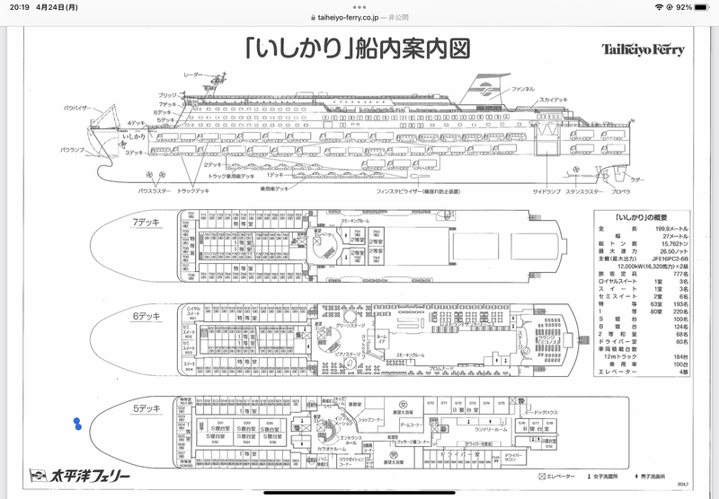 帰路は太平洋フェリーです。