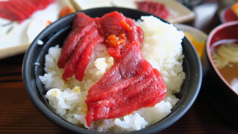 ご飯にのっけて醤油を少したらして馬刺し丼に。