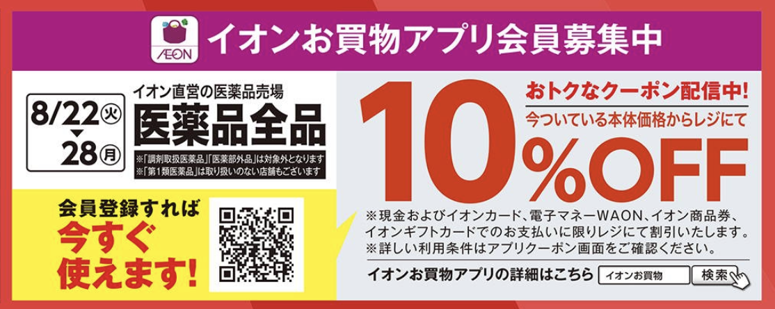 そのイオンも10%割引きクーポンが使える日もあったり、