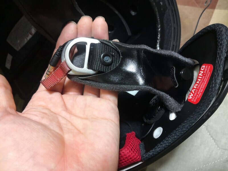 チンストラップも購入したが、安物スピーカーをセットしてあるので、