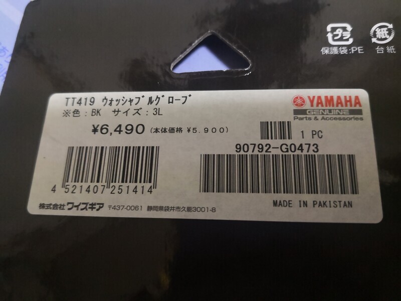 ヤマハ ワイズギア TT-419 ウォッシャブルグローブ(3XL)