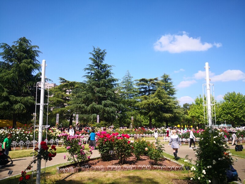 薔薇などの花がいっぱい咲いているので映え映えですね。