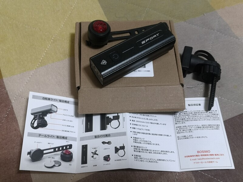 他に事前に買っておいたライト、スマホホルダーなどを付ける。