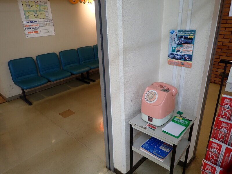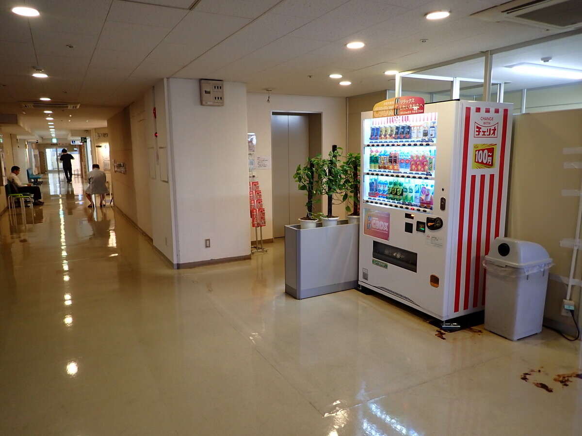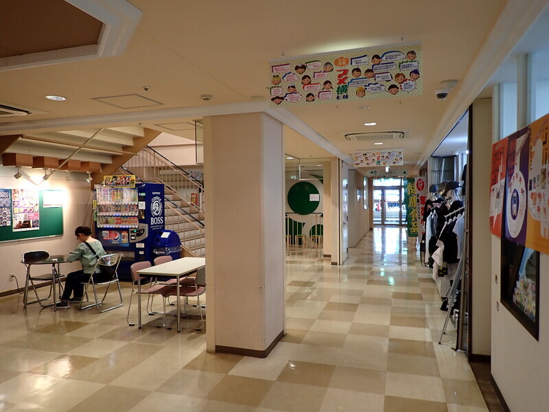 市営駐車場出入口の方にも、小さなスペースの中に机と椅子、そして自販機あり。