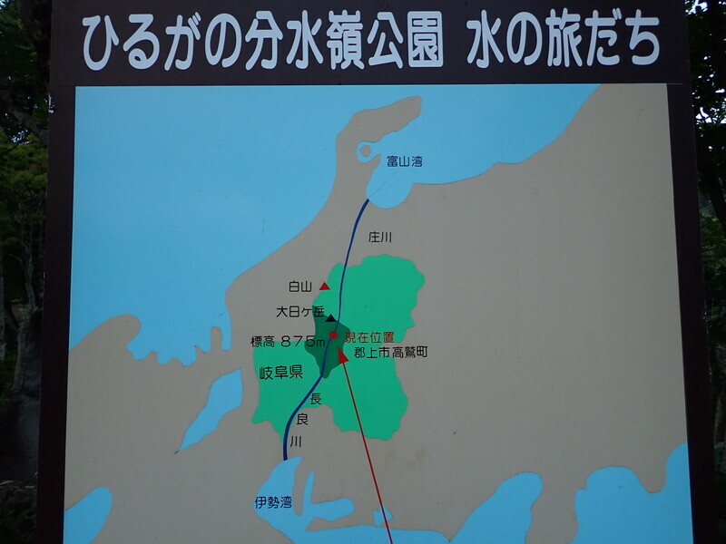 大日岳から流れてくる水は、日本海と太平洋に分かれて流れていく。