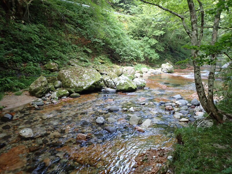 対岸は行き止まりかと思いきや、山へと続く道らしきものもある。