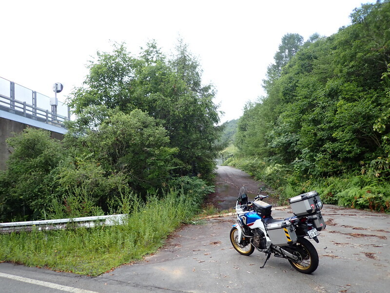 バイクなら行けると思ったけど、下り勾配の先にチェーンが張ってあり終了。