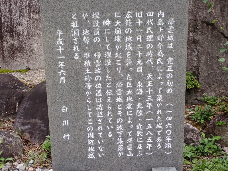 ここにはかつて帰雲城とその集落が集まっていたそうだが、