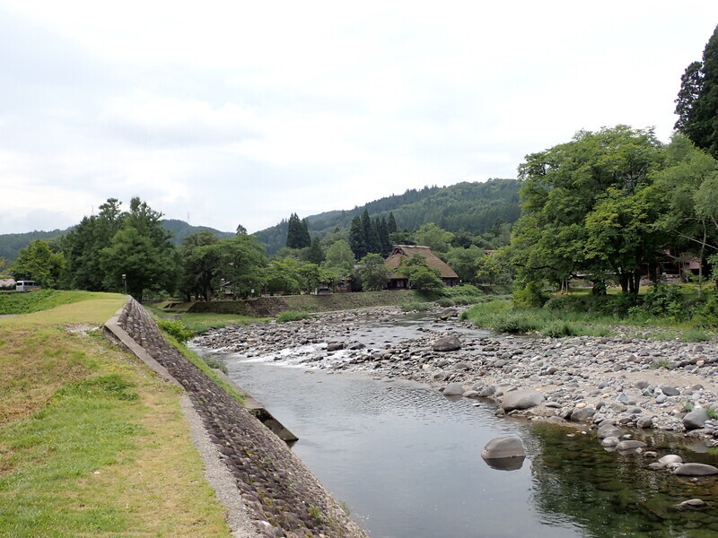 道の駅荘川の近くに広い駐車場と河原があったので、