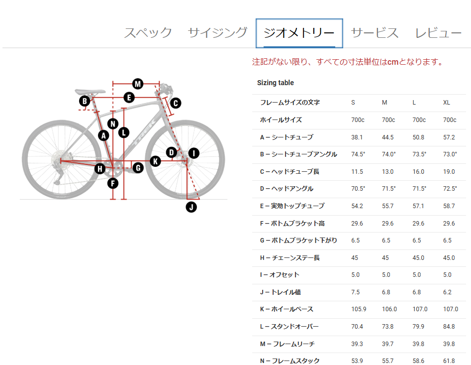 私のFX1はXLサイズなので、ヘッドチューブ(C)が長いのが幸いしたかも。