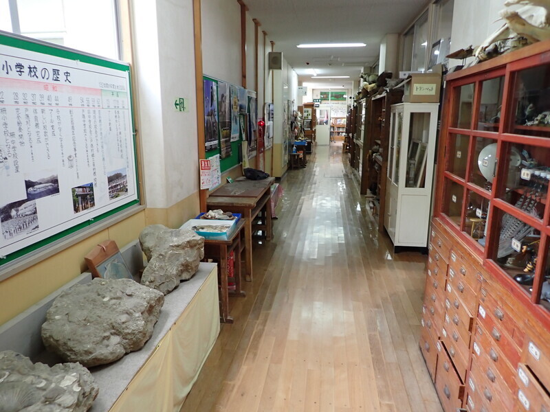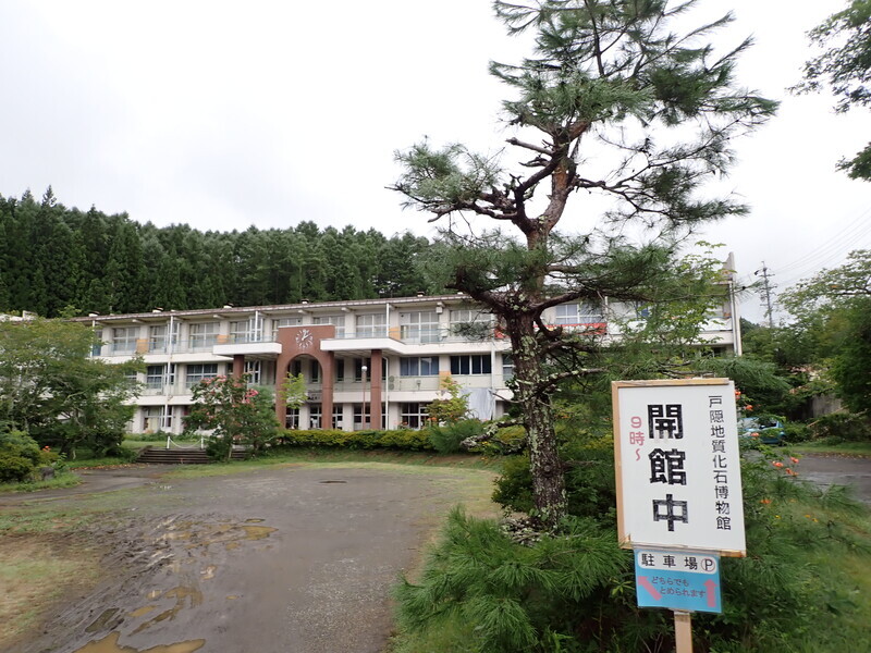 8時15分。閉校した柵(しがらみ)中学校校舎を利用した博物館を見つける。