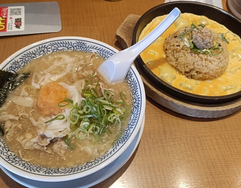 丸源ラーメンと炒飯。注文はタッチパネルになっていた。